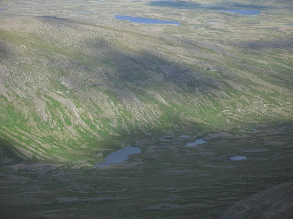 Tälten syns knappt, men det stod två gröna tält på övre sidan av vänstra viken av den vänstra sjön i dalen. Och jag såg nog att det var folk där! :)