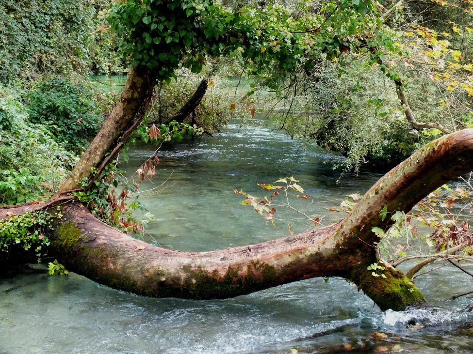 En minst 50 meter djup underjordisk mineralvattenkälla levererar dricksvatten till denna vackra blå flod mitt ute i ingenstans.