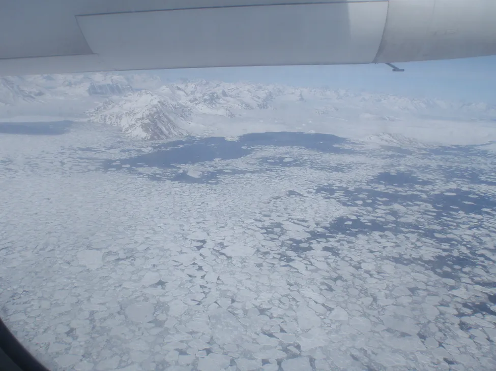 Första skymten av den Grönländska kusten – packis!