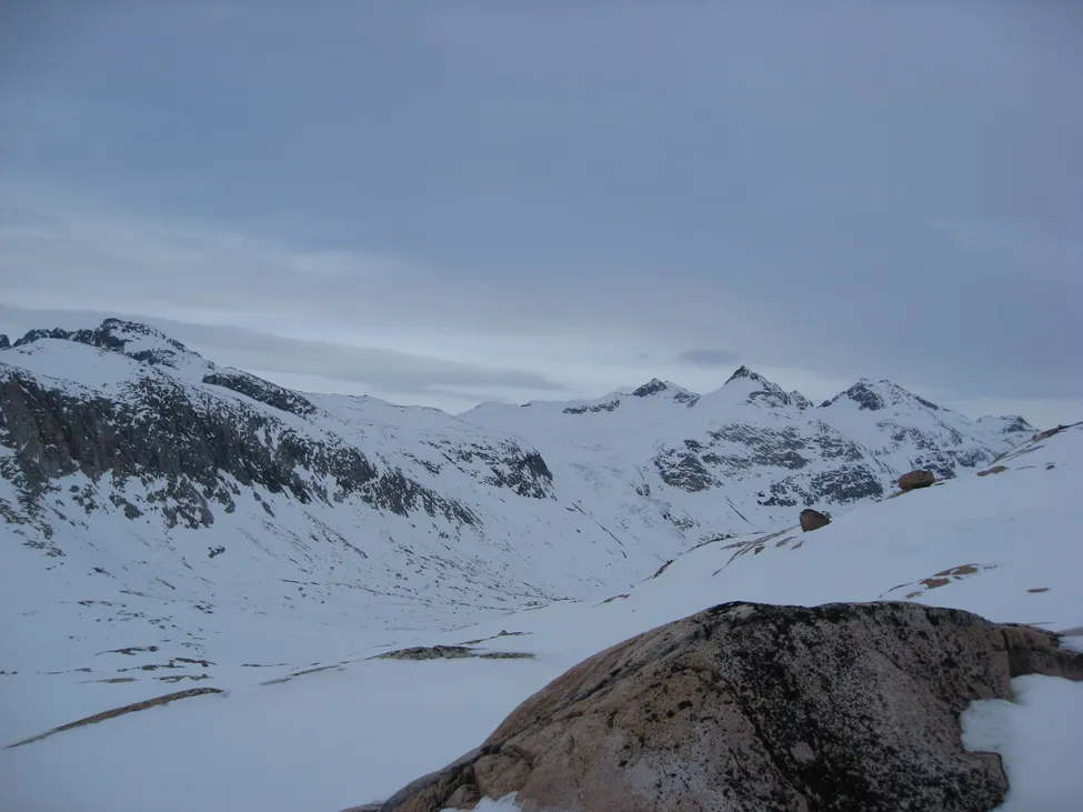Den backiga terrängen forsatte och vi nådde ett pass med havsutsikt bakåt och glaciärer framåt.