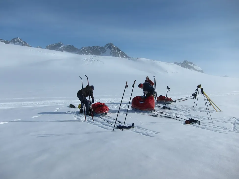 Lunchpaus på glaciären.