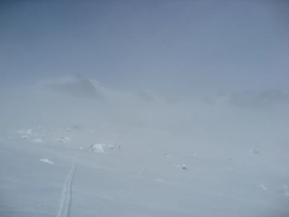 Ny dimma och blockterräng.