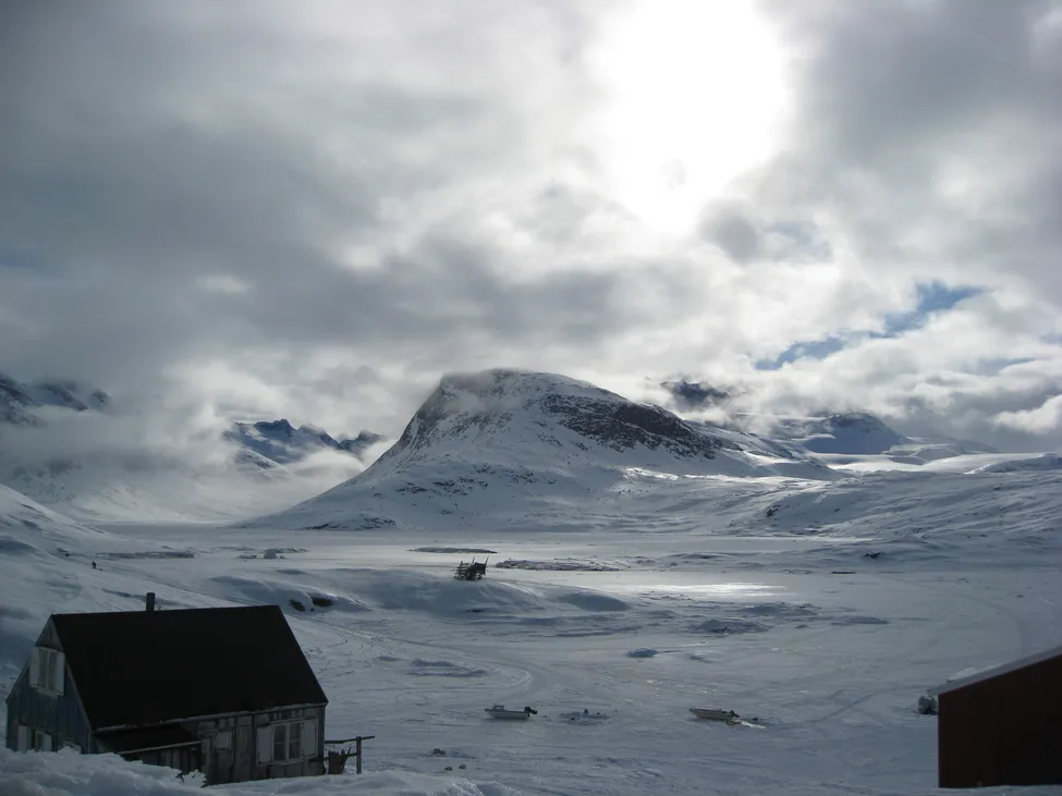 Utsikt från byn med typiskt hus och dito typisk båtförtöjning.