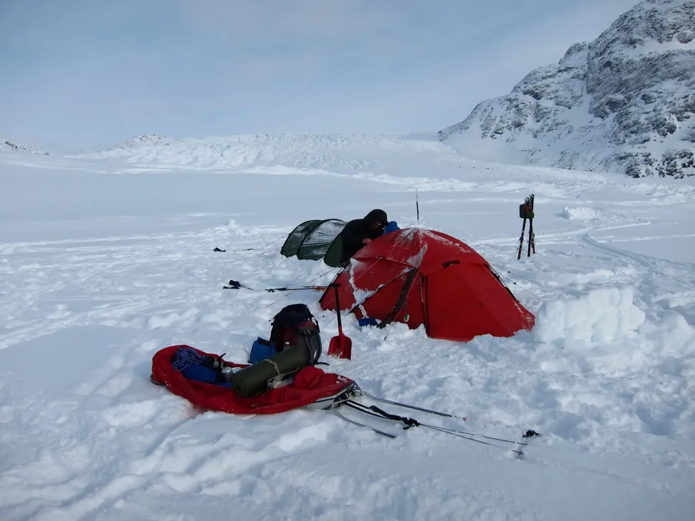 Vårt läger nedanför inlandsisen. Det var en vacker morgon.