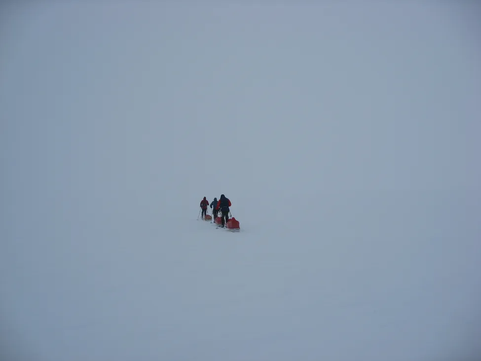 Den totala vitheten tog över när vi kommit upp på de stora vidderna. Målet för denna dag var att komma så långt upp på isen som möjligt.