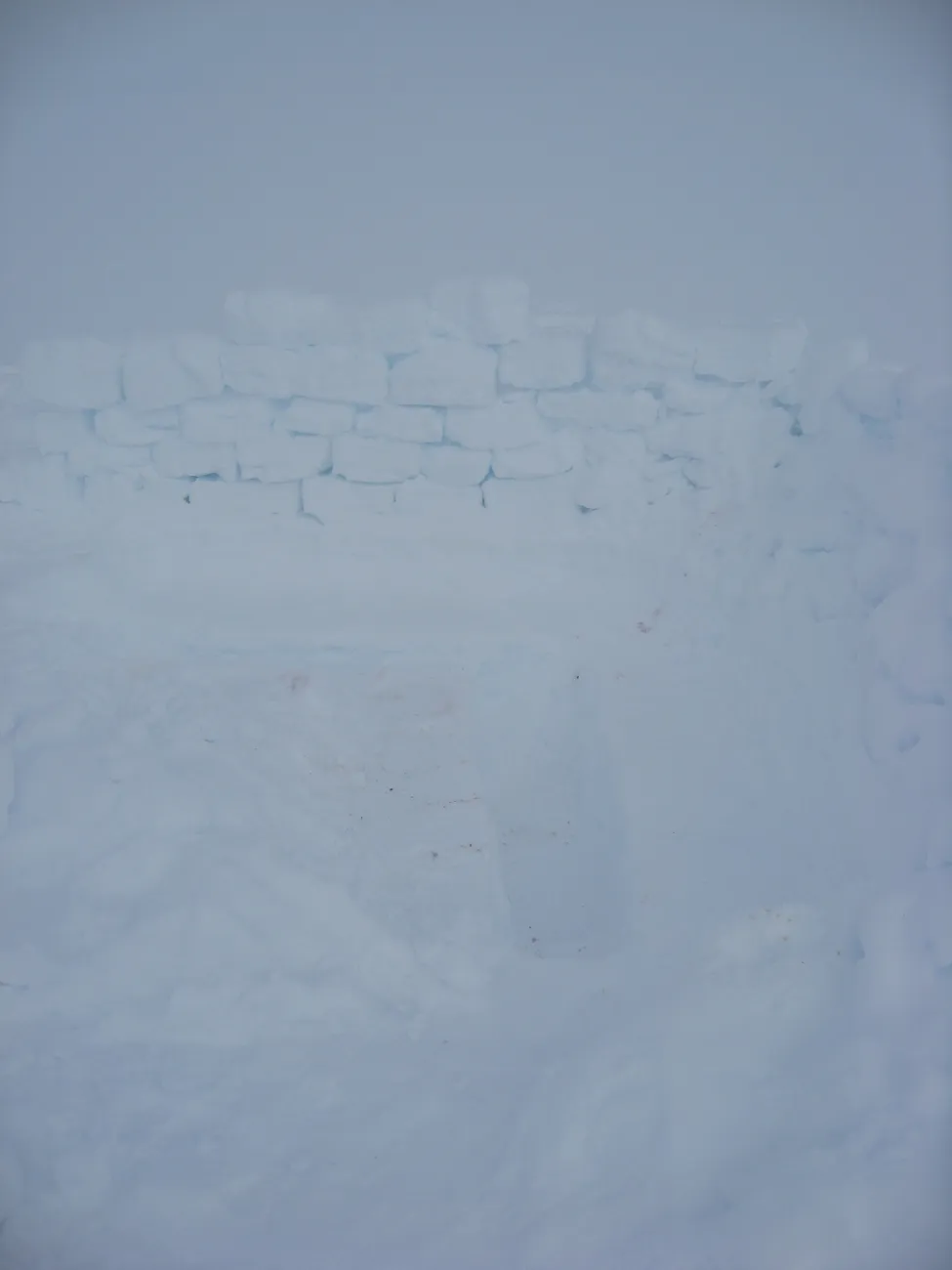 Här är vår omsorgsfullt grävda matplats med extra fina vallar denna dag. Vi var ju ganska väderutsatta upp på isen.