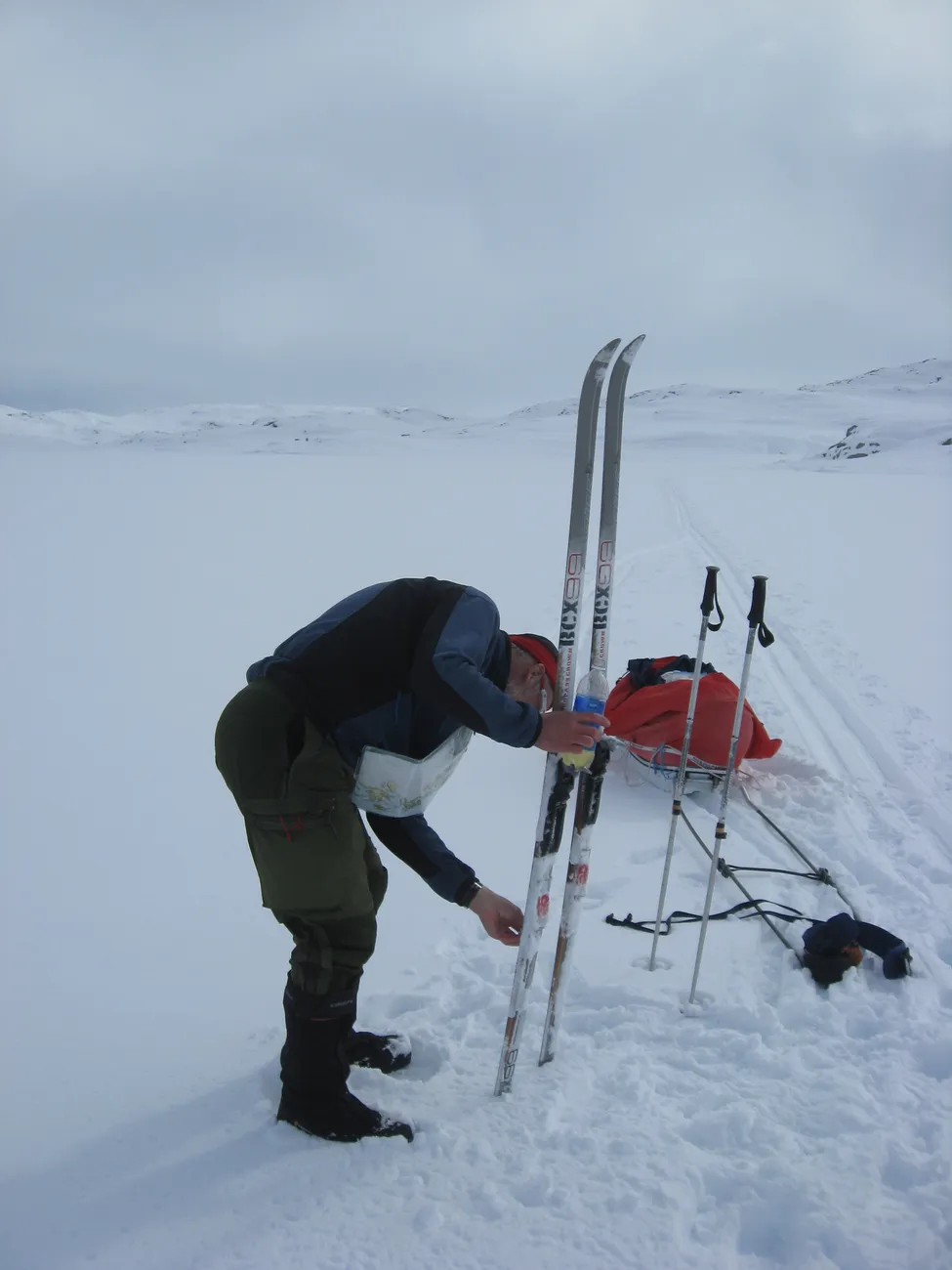 Anders var den enda som hade vallningsfria skidor. För det mesta var det en fördel med vallningsfritt men denna varma dag hade han problem.