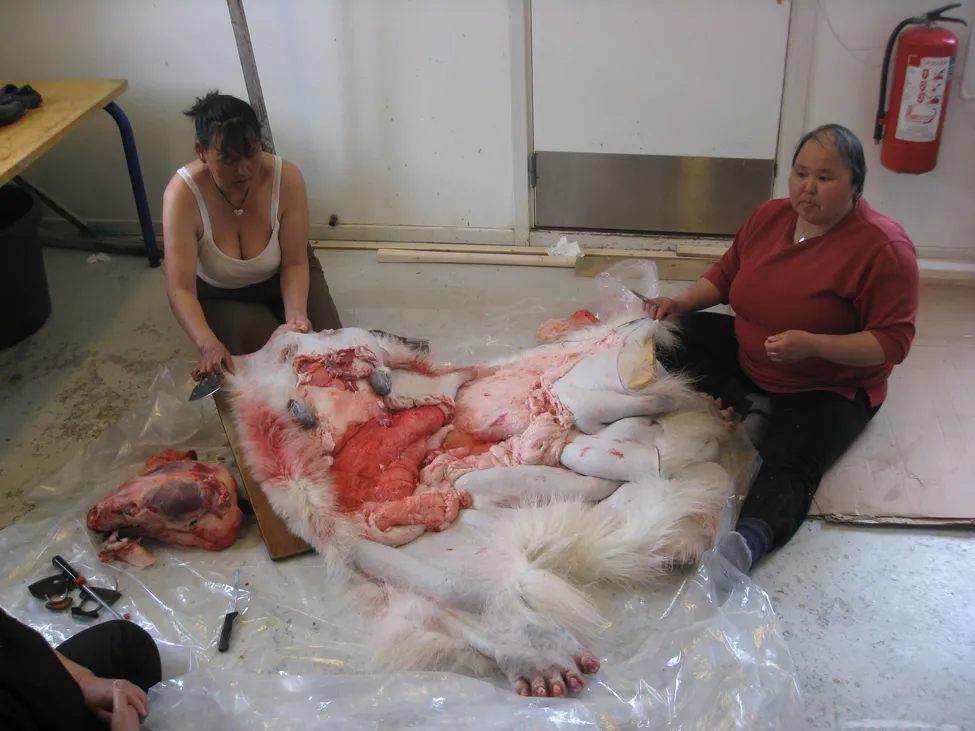 Styckning och skinnberedning av isbjörn vägg i vägg med vårt sovrum.