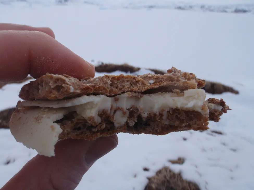 En sjysst grönlandsmacka består av mer Gammeldansk ost och smör än knäckebröd.