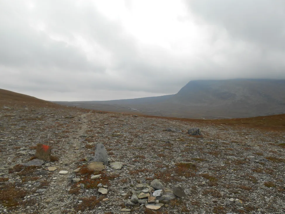 Nästan uppe på krönet av den sista backen mellan Gåsen och Helags fjällstation.