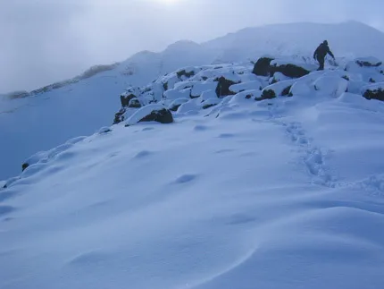 Mathias och jag går upp på Vuojnestjåhkkå en kylslagen eftermiddag i augusti.