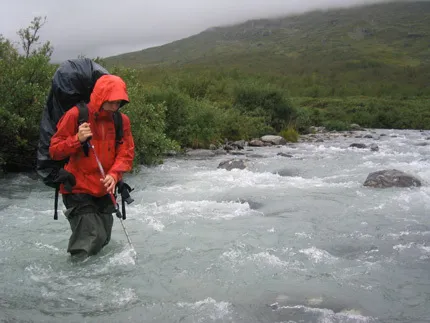 Sofie vid ett av vaden i Njåtjosvagge. Har ingen karta framför mig så jag kan tyvärr inte säga vilket.