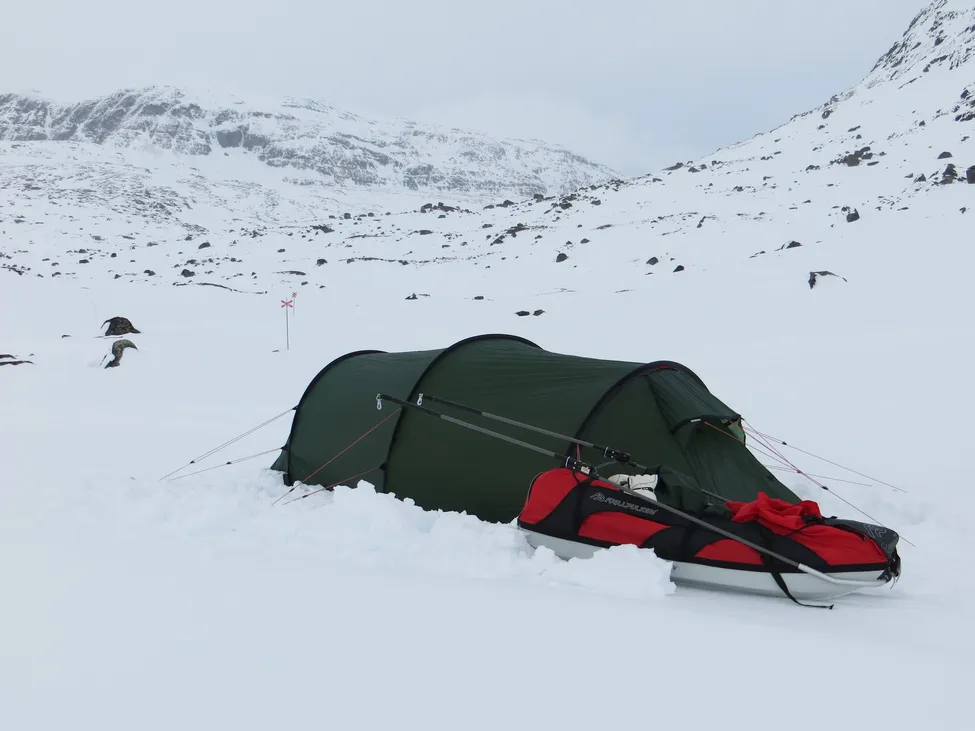 Albin första vintertältning blev halvvägs till Unna Allakas