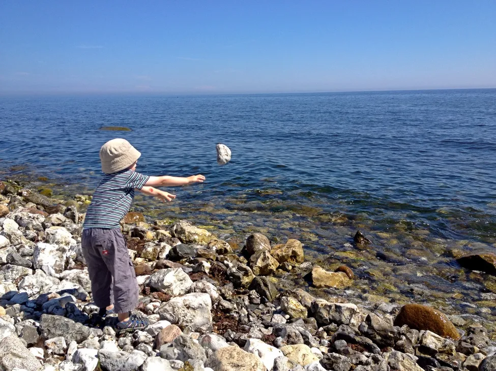 På bilden var han fem år. I år var vi där igen, nu är han 11år. Han kastade sten i år också! Lite lite grann i taget så utökar han Sveriges landsgräns söderut 😁