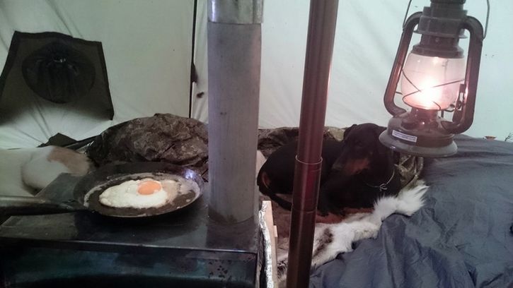 Det fungerar utmärkt att både koka kaffe och steka ägg på kaminen.