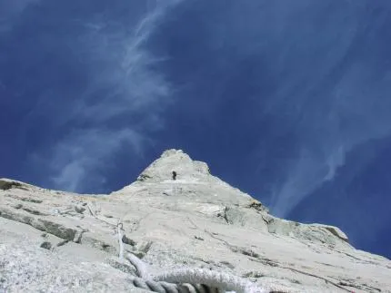 Firning ner för Burgener slabs, Dent du Geant, Mont Blancmassivet.