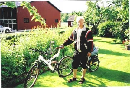 Cyklade Sverige runt 2002.Här poserar jag hos vänner i småland