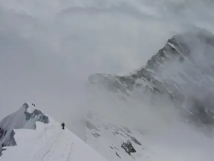Ett par brittiska klättrare på nedre delen av syd-östra toppkamen, Mönch.