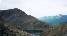 Här kan du se själva "eggen" på Besseggen. Detta är en av de populäraste lederna att gå i Jotunheimen. Att den va populär - ja det märktes. Det va motorväg uppför fjället. Människor från hela världen hade kommit hit för att vandra. Pratade med både kineser & australiensare. När du går upp så har du på ena sidan om dig ett 500m stup och på den andra sidan ett (om jag minns rätt) 700m stup. Det gäller att hålla reda på vart man sätter fötterna!