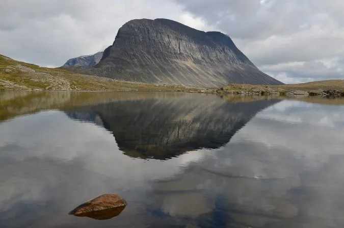 8. Liddubakti 1695 meter speglar sig i Jierttajavri.