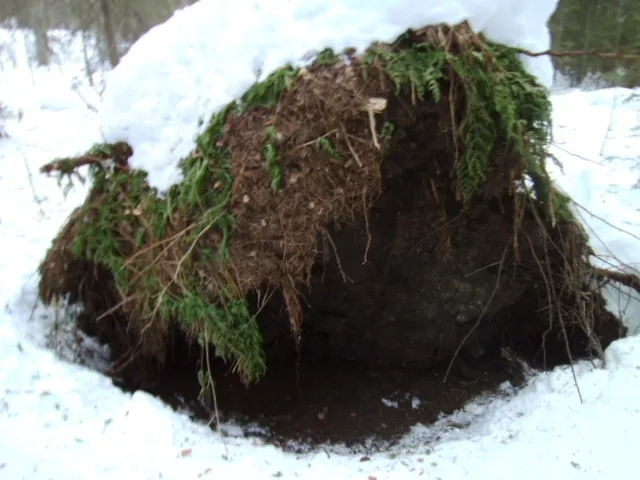 En rotvälta som är längre än mig fast jag står 80 cm från backen tack vare snön, jag är 186 cm.