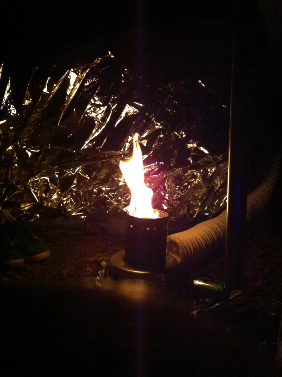 -Nej, ikeas bestickkorg laddad med pellets och en reflektorduk räcker inte för att värma upp ett varanger 4-6.