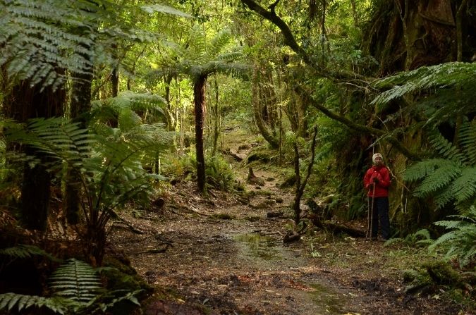 1. Skog och blött en bit efter starten i Hopuruahine Landing på Lake Waikaremoanas norra sida dit vi åkte båt.