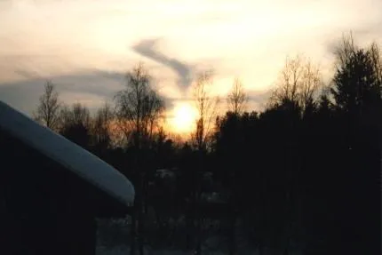 Eftermiddagssolen i Norrland efter en lång skidtur i naturen.