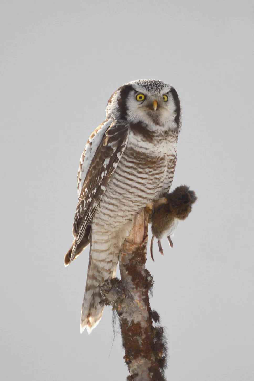 Ett underbart naturmöte med Sveriges dagaktiva mest aggressiva uggla... Har haft förmånen att studera dom från 5 meters håll då dom häckat i en knipholk.