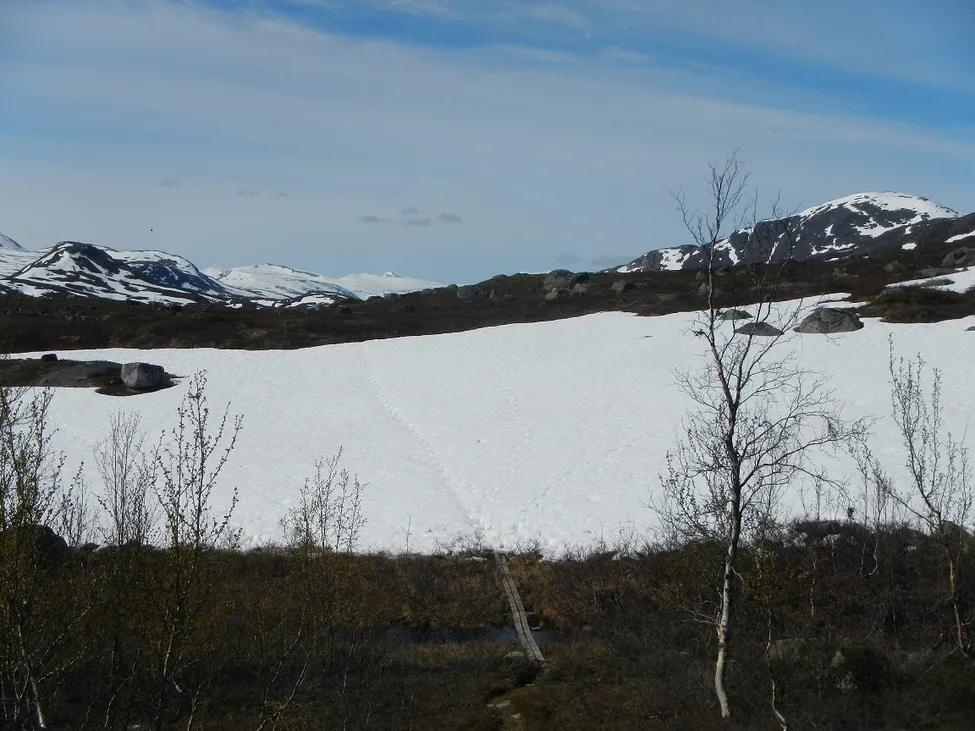 På väg mot Unna Allakas i juli 2015. Fick korsa flera snölegor.