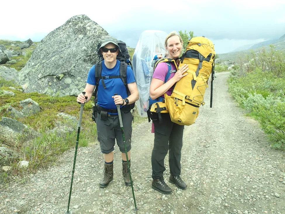 Fullpackade på väg upp till Katterjaurestugan