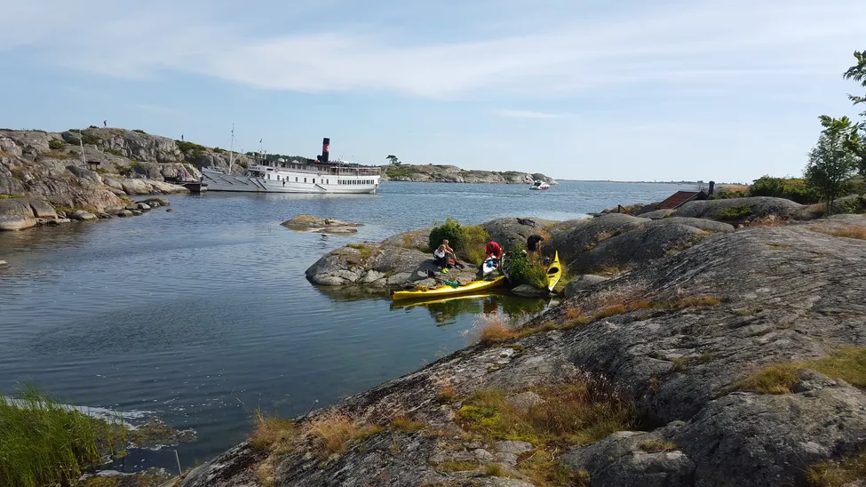 Packning av kajaker på Bullerön i Stockholms Skärgård