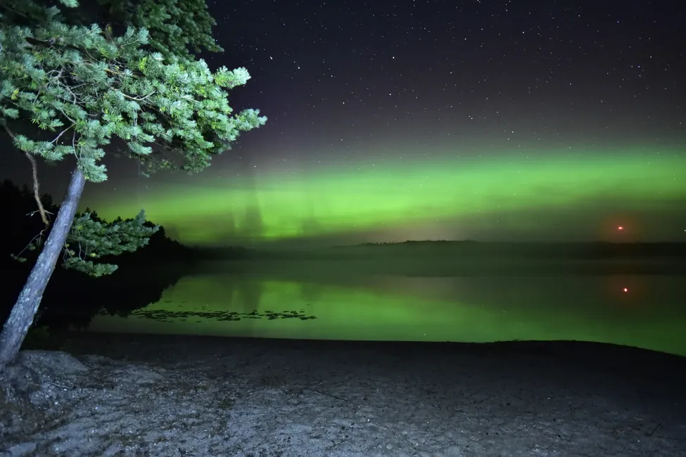 Magiskt ljus - med reflexer i vattnet som extra krydda! Man kan även urskilja Stora Björn på himlen. Vilken slutartid och vilket ISO-tal använde du?