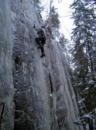 En av mina klätterkompisar provar på isklättring för första gången. Tog ett tag för honom att ta sig upp men tekniken växte med tröttheten.