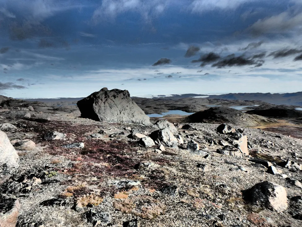 Vy över inre delar av Grönland. Har använt filter i kameran