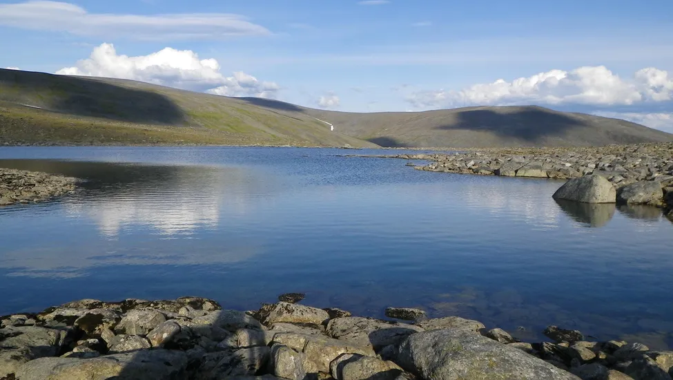 Vássajávri, vy mot söder. Finfin plats för en bad- och fikarast på vägen ner (eller upp) från Mårmapasset.