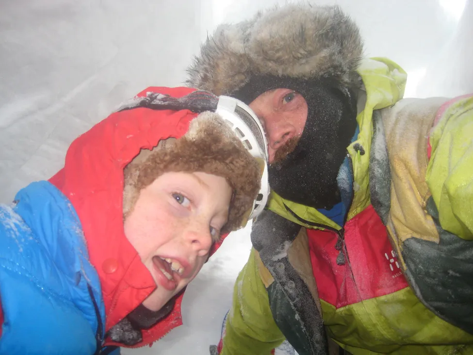 De dagar som det blåste grävre vi snöbivack: 2 m långt, 70cm brett dike rätt ner ca 2m, utvidga åt sidorna och snöblock