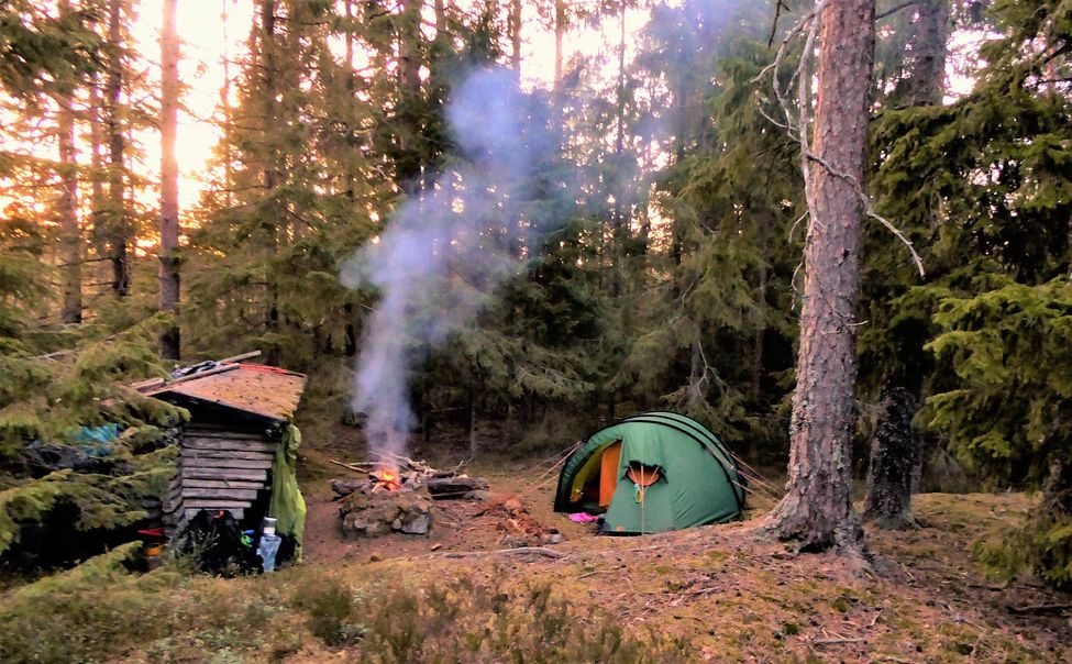 Mitt ute i Ingenmansland, i närheten av Gårdsjön i Kilsbergen, ligger detta snart fallfärdiga (tyvärr) vindskydd i en fantastisk glänta.
