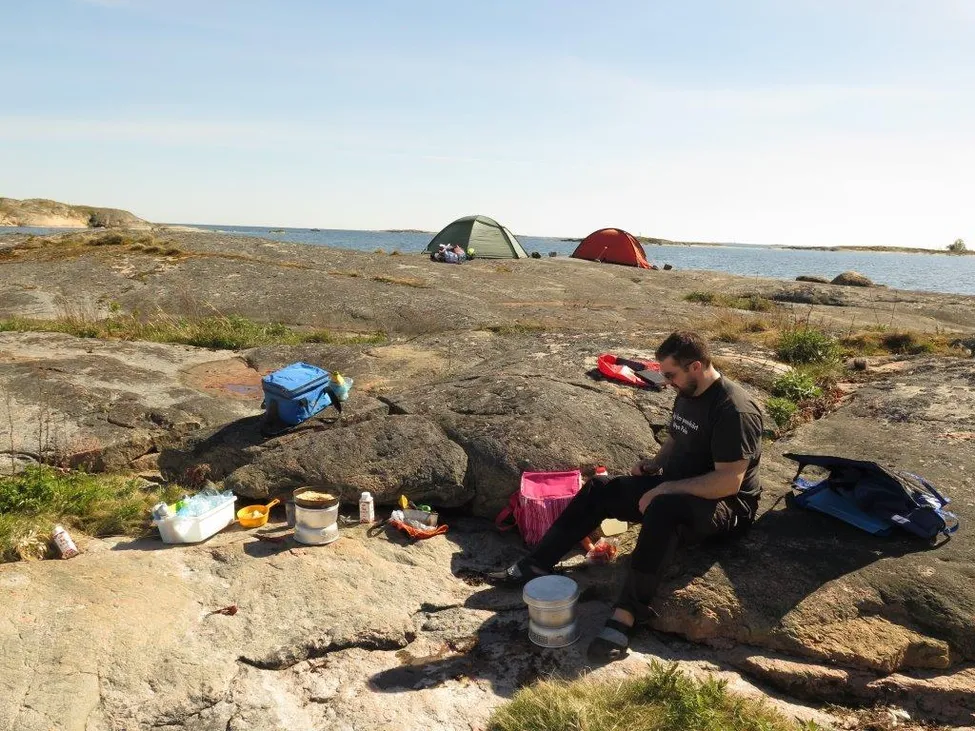 Fantastisk fint sommarväder i början av maj, när lägret var klart tog matlagningen vid.....