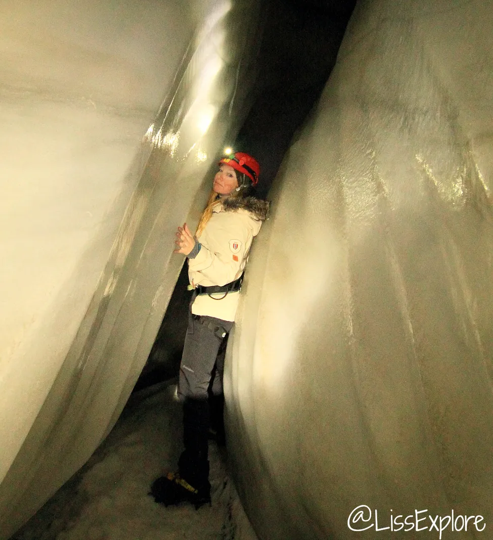 Smalt mellan isväggarna - isgrottorna kommer ändra form tills nesta år