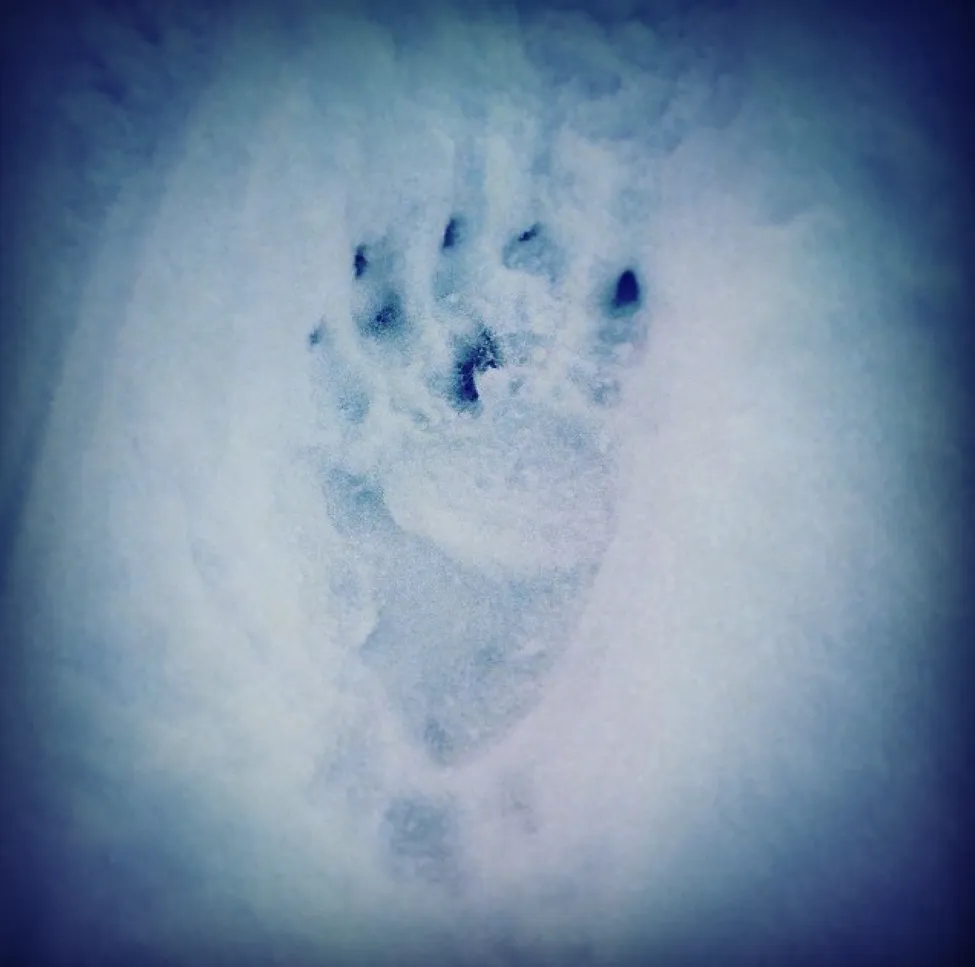 Björn mamma med två Björn ungar nära idet. Först såg vi massor spår av ungarna som lekte och röjde omkring, senare ordnade de upp sig och ungarna började gå i mammans spår sista vägen till idet. Där vi stannade i respekt för deras frid.