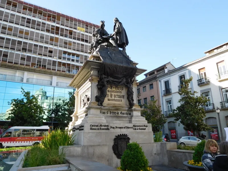 Monument som är hängiven till mötet mellan drottningen Isabella I och Christopher Columbus, upptäckare av Amerika. Statyn står i staden Granada Spanien.