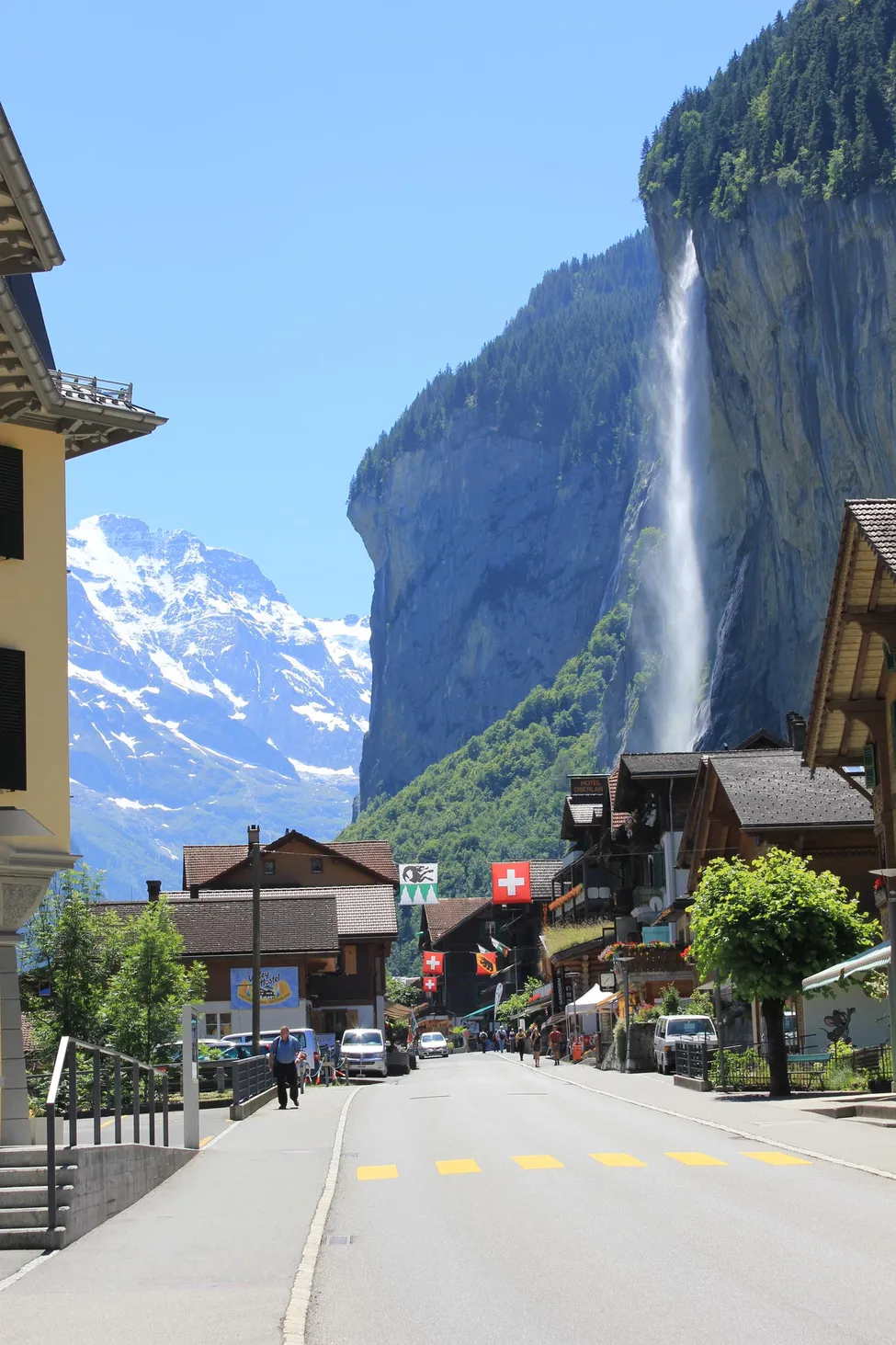Visst är det fantastisk! Orten heter Lauterbrunnen.