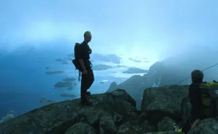 Klättrade upp med 2 galna norska militärer. Kungen sitter i båten nedanför.