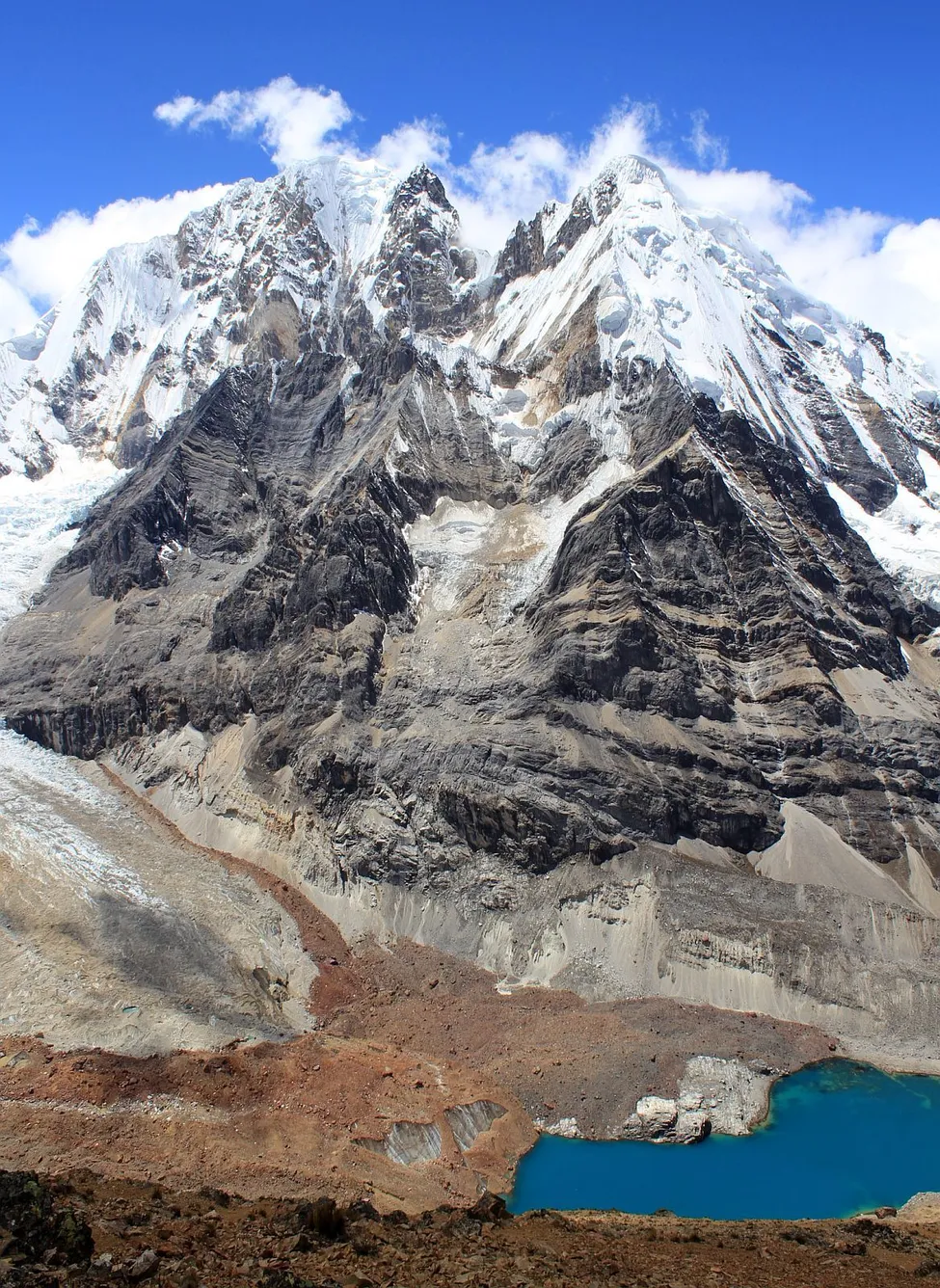 Siula Grande och Sarapo, två giganter i Cordillera Huayhuash
