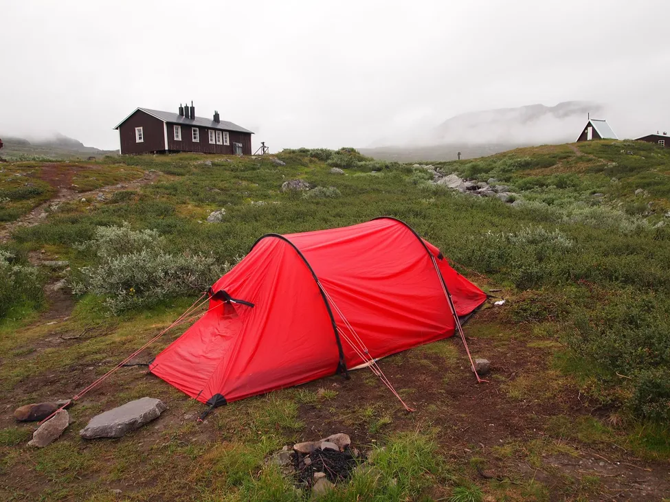 Hilleberg-tält i Singi, efter regnskur.