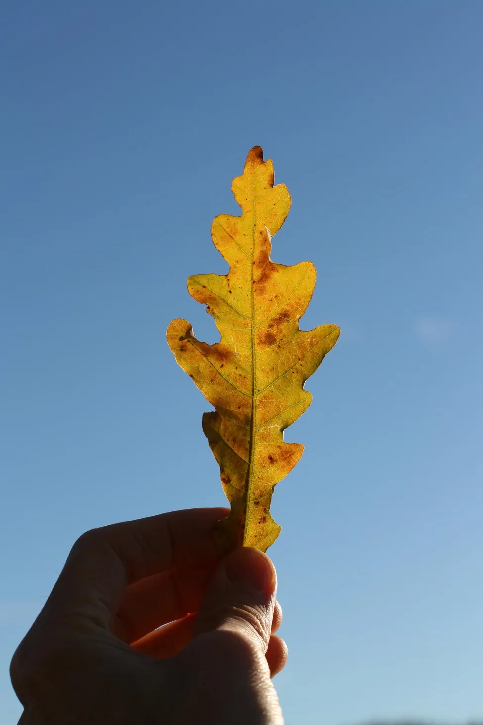 Ett gyllene eklöv plockat nära Morga hage.