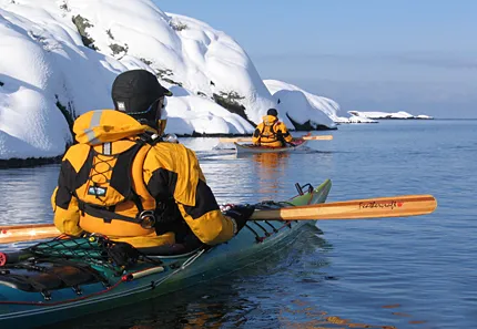 Skön bild. Lite skoj att bägge paddlarna ser exakt likadana ut. Hade varit ännu roligare om snön hade täckt klipporna helt, då hade du kunnat lura i mig att det var på Grönland :)