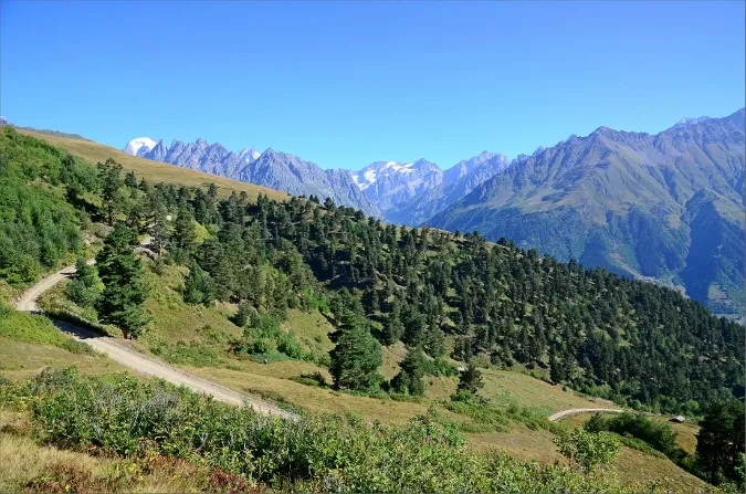 2. Från Mestia upp till Koruldi Lakes vandrar man mestadels på grusväg.