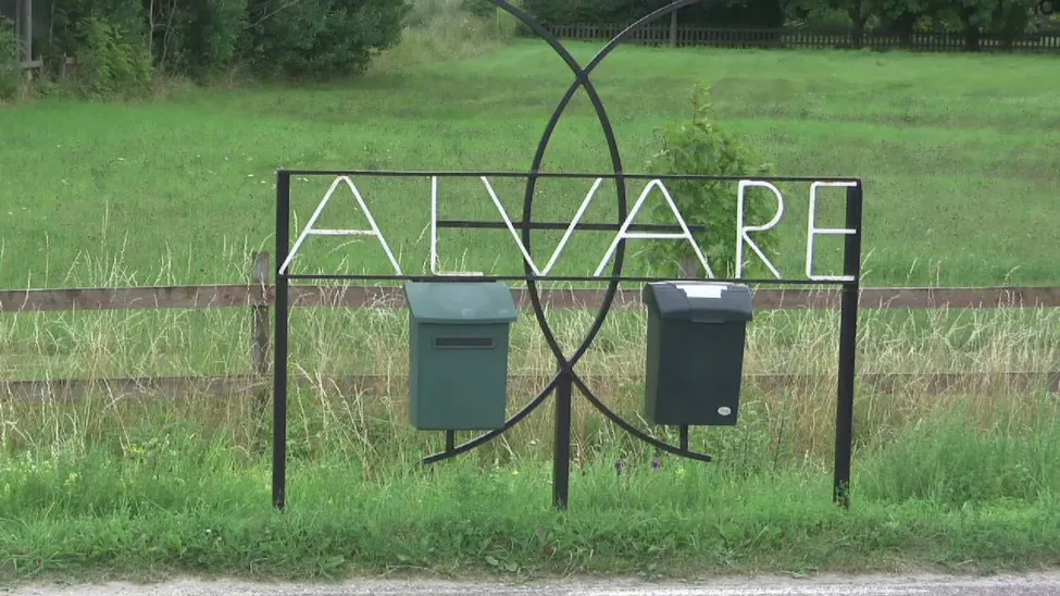 Gammal smidd järnkonstruktion med gårdsnamnet snyggt och välgjort utsmyckat ovanför postlådorna. Känslorna börjar krypa i kroppen!